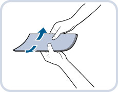 Si el papel está curvado, cuando utilice la bandeja multiuso pueden producirse atascos de papel. Por ello, corrija el curvado como se indica en el gráfico antes de cargar papel en la bandeja multiuso.