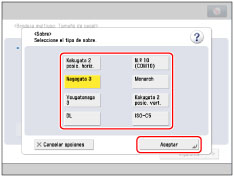 Establezca el tamaño de los sobres en el mismo tamaño que el de los sobres cargados en la bandeja multiuso.