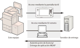 Para conocer las instrucciones acerca de cómo instalar y desinstalar aplicaciones MEAP, consulte "Instalar aplicaciones" y "Desinstalar aplicaciones".