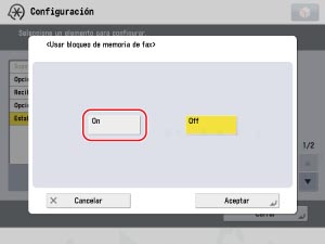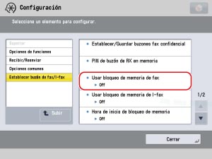 → [Opciones de funciones] → [Recepción/Reenvío] → [Opciones comunes] → [Establecer buzón de fax/I-fax] → [Usar bloqueo de memoria de fax].