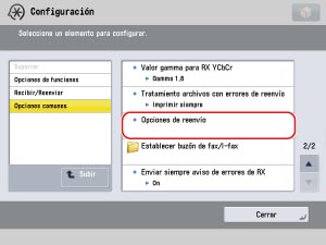 → [Opciones de funciones] → [Recepción/Reenvío] → [Opciones comunes] → [Opciones de reenvío].