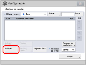 Seleccione la opción de reenvío guardada → pulse [Validar/Invalidar].