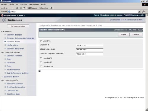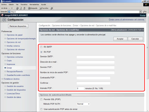 Configuración de imageRUNNER ADVANCE