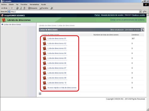 Acceda a la IU remota → haga clic en [Libreta de direcciones] → y seleccione la lista de direcciones de la lista.