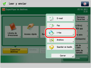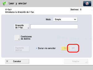 Haga clic en [Opciones de I-fax] → seleccione <Enviar vía servidor>.