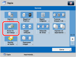 Una vez finalizada la copia reservada, se envía un aviso de fin de trabajo al destino seleccionado.