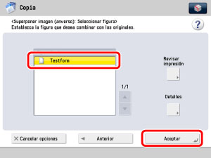 Seleccione la página de imagen para superponerla al original → pulse [Aceptar].