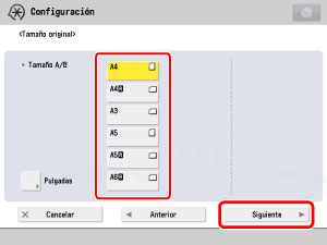 Seleccione el tamaño del original que contiene la página de imagen → pulse [Siguiente].