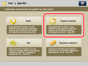 Guarde las tarjetas de presentación leídas en el espacio avanzado del equipo, en el espacio avanzado de otro equipo de en la red o en el dispositivo de memoria.