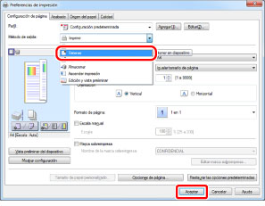 Cuando presente una tarea, podrá seleccionar imprimirla directamente o retenerla en la cola de retención.