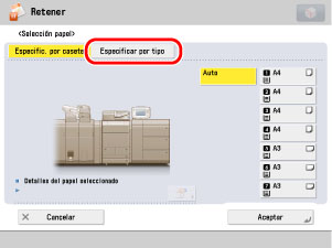 Seleccione el tipo de papel que desee utilizar de la lista → pulse [Aceptar].