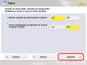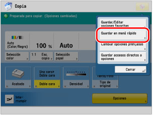 Si guarda las opciones de funciones que utiliza con más frecuencia, como Copia, Leer y enviar, y Leer y guardar, en el Menú rápido, también podrá utilizar estas opciones en otro equipo.