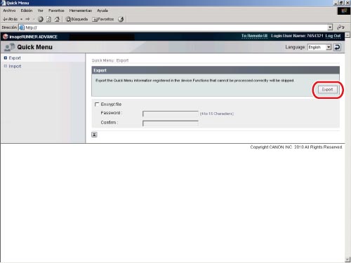 Por ejemplo, si la dirección IP del equipo es "192.168.11.55", escriba "http://192.168.11.55:8000/custommenu" como la URL.