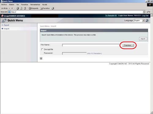 Haga clic en [Examinar] → especifique el archivo que desea importar.