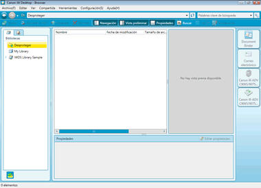 Puede registrar Espacio avanzado de imageRUNNER ADVANCE o una de sus carpetas como una librería personal del software de gestión de documentos iW Desktop.