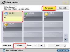El administrador puede eliminar la información del botón iniciando la sesión en la página de servicio de gestión de información de configuración del usuario (User Setting Information Management Service) desde el navegador web. (Consulte "Gestión de información de opciones de usuario (Servicio de gestión de información de opciones de usuario)".)