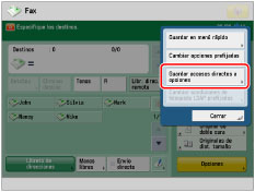 Seleccione el modo [Opciones] que desea asignar como acceso directo → pulse [Aceptar].