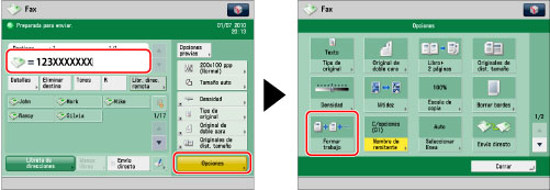 Especifique el destino → pulse [Opciones] → [Formar trabajo].