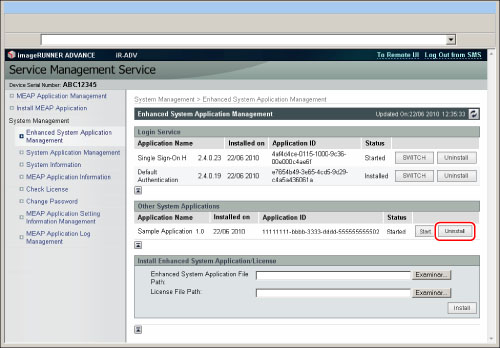 Haga clic en [Uninstall] para la aplicación que desee desinstalar.