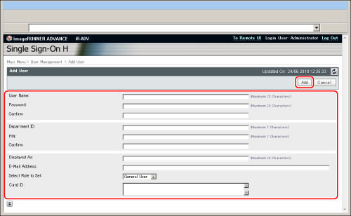 Si selecciona [Administrator] para [Select Role to Set], podrá utilizar el nombre de usuario y la contraseña para iniciar sesión con Local Device Authentication.