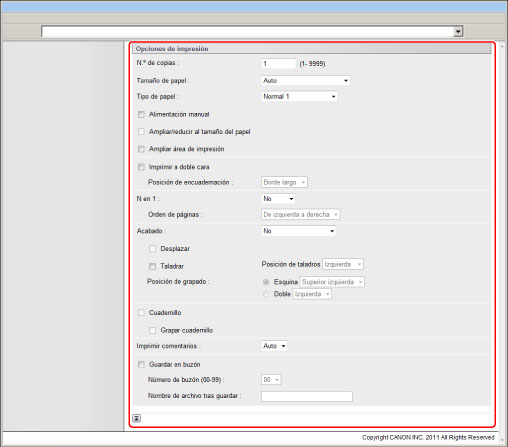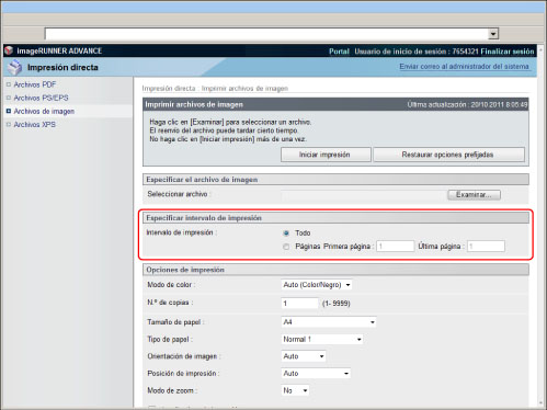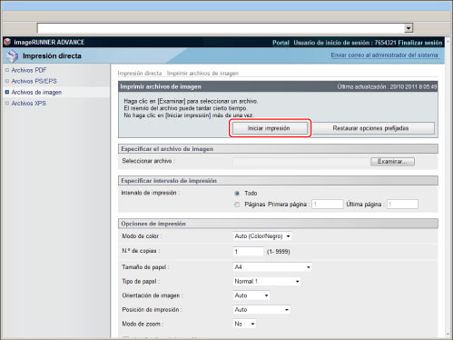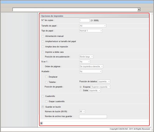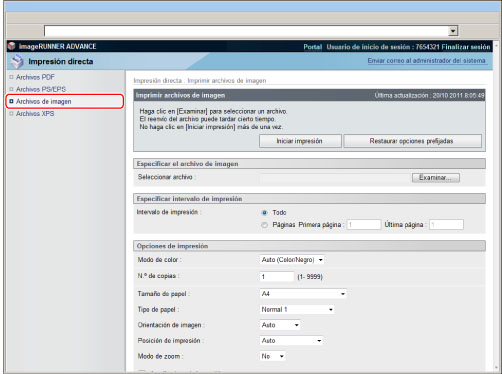 Para imprimir especificando una URL, es necesario establecer [Usar impresión refer.] en 'On' en [IU remota] de [Opciones de gestión] (Configuración).