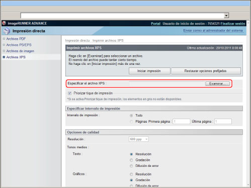 Se requiere el Kit de Impresión Directa (para PDF/XPS) para imprimir un archivo XPS sin abrirlo.