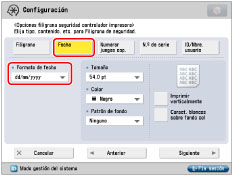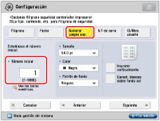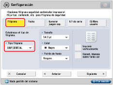 Para conocer las instrucciones acerca de la introducción de caracteres, consulte "Introducir caracteres desde la pantalla táctil". Si ha guardado caracteres en [Guardar caract. para numerar págs./Filigrana] en [Opciones de funciones] (Configuración), puede seleccionarlos de la lista.