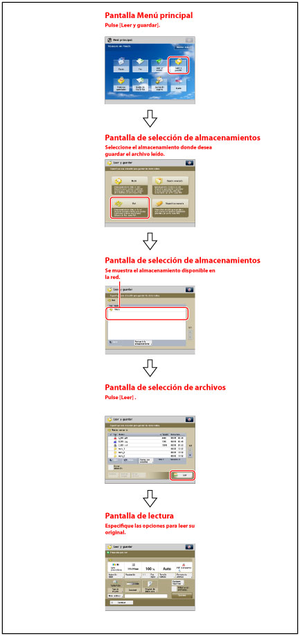 En los siguientes casos, no podrá guardar archivos en el espacio avanzado de otro equipo de la serie imageRUNNER ADVANCE de la red. (Los siguientes valores dependen del espacio libre que quede en el disco duro.)