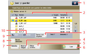 Para conocer las instrucciones acerca de cómo ordenar las carpetas, consultar la información detallada del archivo y editar o eliminar archivos, consulte "Archivos guardados".