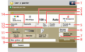 Se pulsa para especificar opciones de lectura útiles, como por ejemplo, leer juntos originales de distinto tamaño o dividir originales en varios lotes para leerlos.