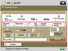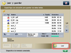 Es necesario activar <Usar la función Lectura> en [Usar la función Lectura/Impresión] para leer originales en dispositivos de memoria. (Consulte "Opciones de dispositivos de memoria".)