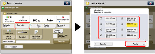Si va a guardar archivos en un buzón, la resolución se fija en 600 ppp.