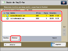 Seleccione el archivo que desee eliminar → pulse [Eliminar].