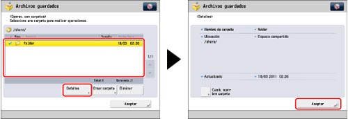 Seleccione la carpeta que desee → pulse [Detalles] → [Aceptar].