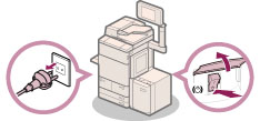 如果本机冒烟或发出异常噪音,请立即关闭主电源开关,从电源插座拔出电源线,然后致电当地的授权Canon经销商。如果在这种情况下继续使用本机,可能会导致火灾或触电事故。还应避免在电源插头附近放置物品,以便随时能够拔出本机的电源插头。