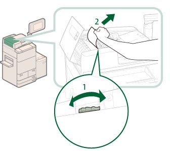 如果在取出卡纸时遇到困难,关闭输稿器,打开输稿器盖板和内盖板,然后继续执行步骤4。