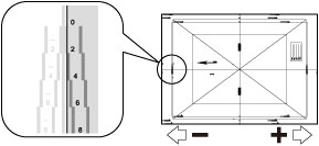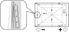 对齐标记的中心线位于打印测试页边缘外侧(未打印对齐标记的中心线)时按此按键。图像沿纸张的输送方向按照输入像素的数值向右移动。