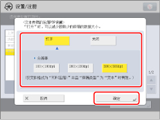 在[原稿类型]中选择[文本]时,即使选择了[高压缩时图像质量优先级]中的[图像质量优先],该设置依然有效。有关详细信息,请参阅“高压缩时图像质量优先级”。
