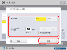 <智能扫描>按[打开]→按<OCR文件名称字符数>的[-]或[+]设置文件名称的字符数→按[确定]。
