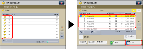 选择所需“存储箱”→选择所需文件→按[打印]。