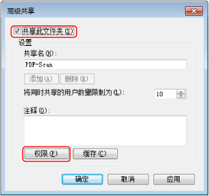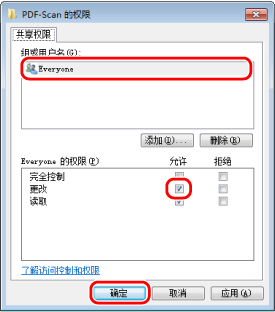 如果[共享]选项卡中未显示[权限],单击[工具]→[文件夹选项]→[视图]→取消选择[使用简单文件共享]。有关详细信息,请参阅Windows XP随附的手册。