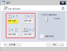 双面]复印时,按照屏幕上显示的说明扫描原稿的每一面。如果要将双面原稿放置到稿台玻璃上使用[双面