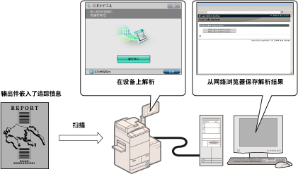 QR代码包含存储在首个嵌入QR代码和最后一个嵌入QR代码中的信息。根据QR代码的此项功能,如果复印已经打印QR代码的输出件并在输出件上嵌入新QR代码,为“文档扫描锁定”模式设置的条件决不会低于前一个设置的条件。例如,即使最新的扫描锁定信息设置为[允许全部],嵌入QR代码中的首个扫描锁定信息为[禁止全部],下一个“文档扫描锁定”模式将应用[禁止全部]。