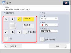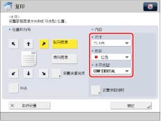也可以选择在[注册页码编排/水印字符]中注册的文本。(请参阅“注册/编辑/删除页码和水印的用户定义文本”)