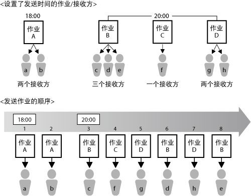 如果正在处理其他无“定时发送”设置的作业,或存在影响指定接收方的其他因素,可以预约的定时发送作业数量也可能减少。