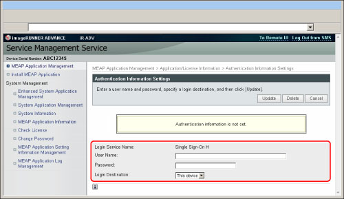 要从应用程序执行不要求从本机操作的操作,必须预先指定应用程序认证信息的设置。