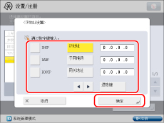 如果在重新启动本机后不能通过DHCP、RARP或BOOTP获得此信息,则输入[IP地址]、[子网掩码]和[网关地址]以使用该步骤中输入的设置。