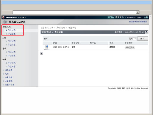 显示包括“存储接收收件箱”或“保密传真收件箱”中的作业在内的本地打印作业日志。