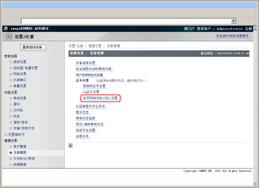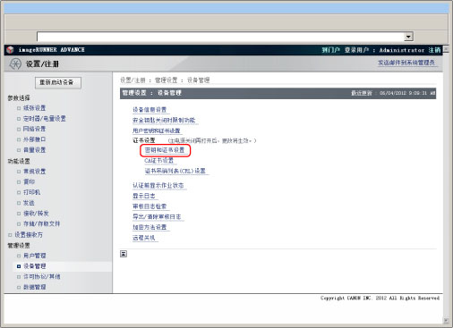 本机中已注册预装的密钥对和服务器证书。也可以使用预装的密钥对和服务器证书来执行加密SSL通信。也可以使用从本机的操作面板注册和生成的密钥对和服务器证书进行加密SSL通信。