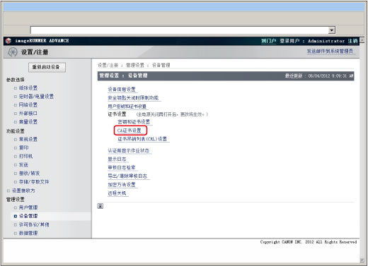 要安装证书吊销列表(CRL),必须以管理员身份登录。